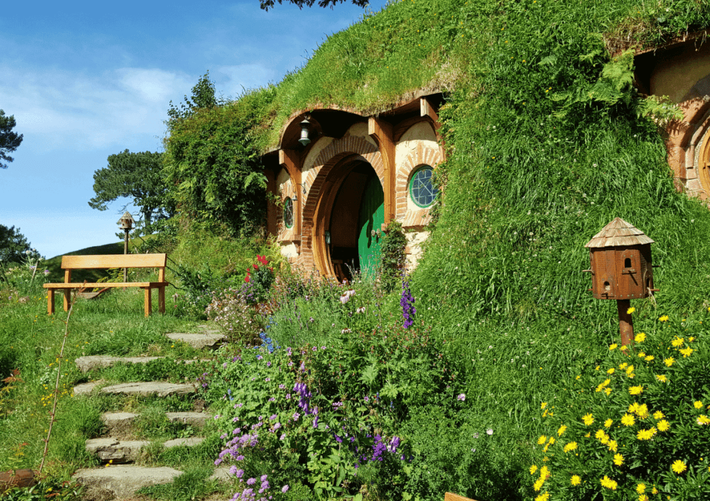 他の国では見られないような圧巻の大自然を誇るニュージーランド。このような光景を求めてこれまでに多くの映像作品の舞台となってきました。その中でも有名なものが『ロード・オブ・ザ・リング』です。この作品は3部作すべてニュージーランドで撮影され、そのロケ地は北島から南島まで150カ所以上に及びます。最も人気のあるホビット村のセットは北島のアマタマにあり、スローライフ感のあふれる牧草地に囲まれた風景が有名です。南島は手つかずの大自然がとてもドラマチックです。緑あふれるばかりではなく、ごつごつとした岩がちの丘などもあり、これらも『ロード・オブ・ザ・リング』の舞台となりました。こういったニュージーランドの別世界のような風景が、映画に命を吹き込んだのです。